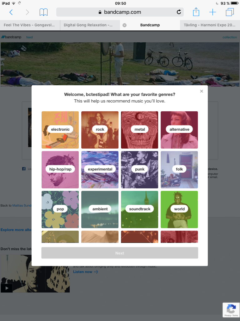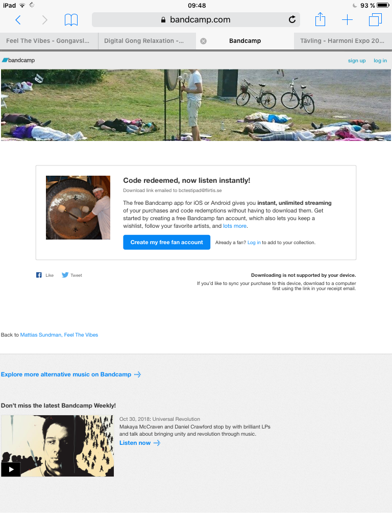 Inloggad i Bandcamp Appen