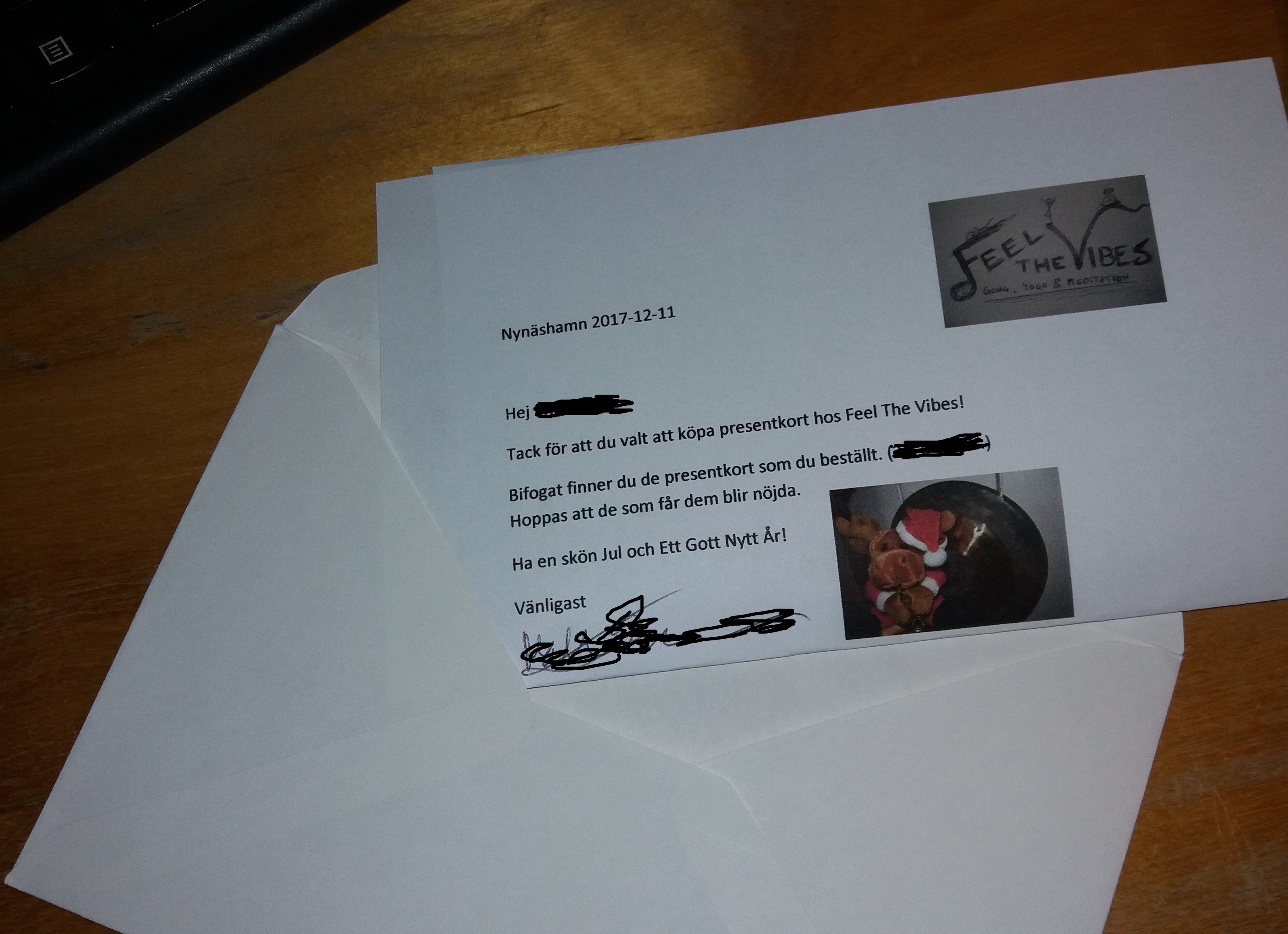 presentkort@feelthevibes.se eller sms/ringa på 070-513 18 87.